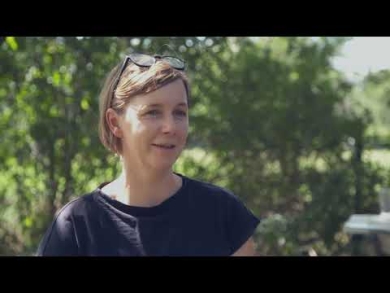 Melanie Garanin freut sich über einen Beamer, eine Leinwand und ein Mikrofon.